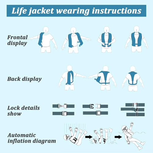 Inflado automático: nuestros chalecos salvavidas inflables se activan dentro de los 3 segundos del contacto con el agua, proporcionando flotabilidad instantánea cuando más se necesita. Hecho de materiales compuestos de nailon de alta calidad, combinan diseño ergonómico con comodidad transpirable para una protección de seguridad contra el agua sin esfuerzo.
