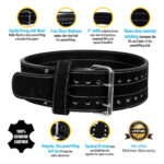Ajuste para un ajuste óptimo: Con doce pares de muescas y una hebilla de doble punta, este cinturón de pesas te permite equilibrar la comodidad y el rendimiento, maximizando tus ganancias de entrenamiento