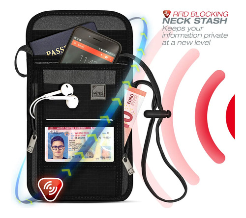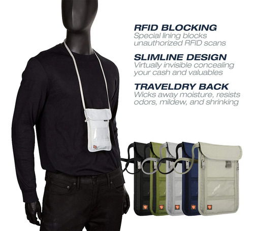 Estilo : Cartera de cuello con bloqueo RFID, bolsa de viaje + soporte para pasaporte para mujeres y hombres