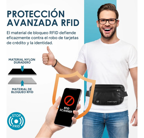 travel inspira Cinturón de Viaje Con Bloqueo RFID y Cremallera Antirrobo: Soporte Delgado Para Pasaporte y Bolsa de Viaje Para Proteger Dinero en Efectivo, Tarjetas y Documentos (Negro tamaño grande)