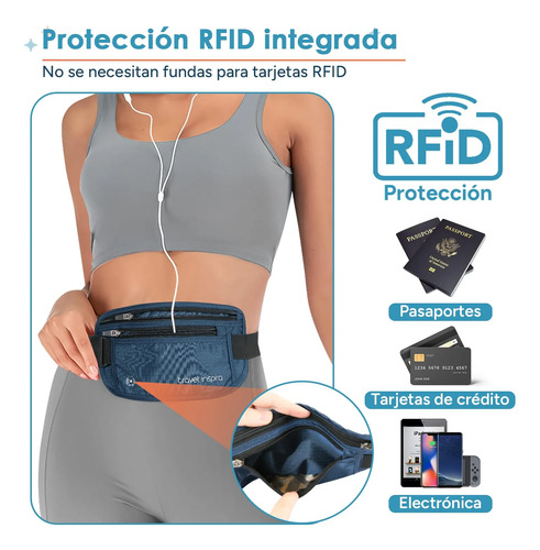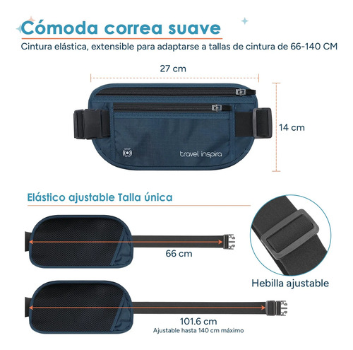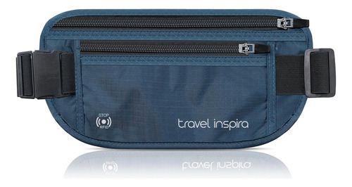 travel inspira Cinturón de Viaje Con Bloqueo RFID y Cremallera Antirrobo: Soporte Delgado Para Pasaporte y Bolsa de Viaje Para Proteger Dinero en Efectivo, Tarjetas y Documentos (Azul Marino)