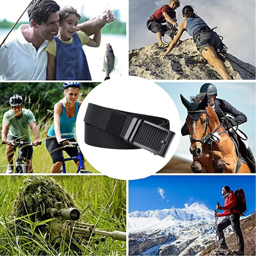 Ajuste cómodo todo el tiempo: con la hebilla automática y el sistema de microajuste de 4 mm, el cinturón de nailon con trinquete permite una regulación más alta y más fácil para un ajuste extremadamente cómodo, ya sea sentado, de pie o haciendo deporte al aire libre. Es suave y sencillo al deslizar la correa del cinturón.
