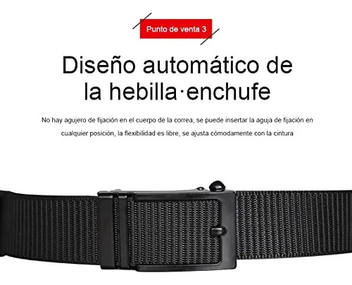Ajuste cómodo todo el tiempo: con la hebilla automática y el sistema de microajuste de 4 mm, el cinturón de nailon con trinquete permite una regulación más alta y más fácil para un ajuste extremadamente cómodo, ya sea sentado, de pie o haciendo deporte al aire libre. Es suave y sencillo al deslizar la correa del cinturón.