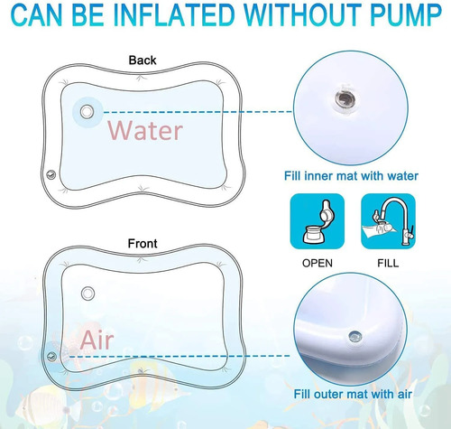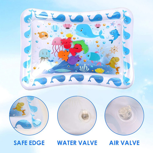 Alta calidad y 100 % seguroCojín de agua de tummy time está hecha de materiales de PVC 100 % de alta calidad, muy duradera, segura para la salud. Material grueso para mantener la resistente, puede soportar alta resistencia de extrusión y no fugas de aire o agua.