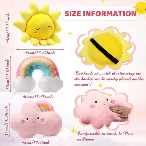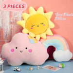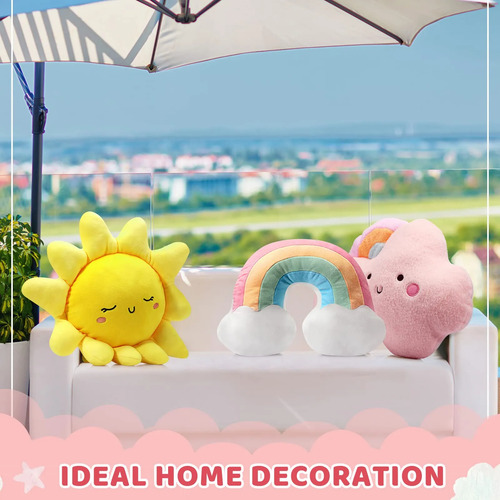 Forma encantadora: recibirás 3 piezas de hermosas almohadas de felpa en varios diseños, como arco iris, nube y sol, que se pueden aplicar como almohada, almohada boca abajo, almohada de cintura, etc., satisface tus diferentes demandas