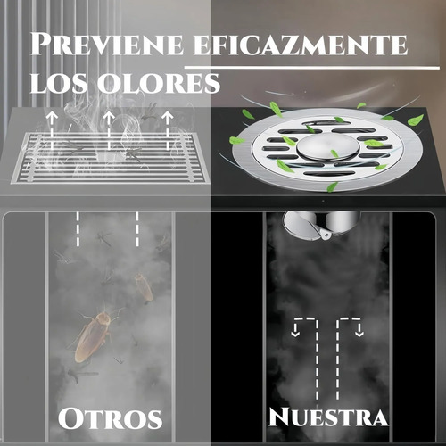 Doble funciónEste desagüe de piso de doble propósito combina funciones de drenaje y sellado. Cuando se necesita drenar, el filtro de drenaje de piso no solo drena rápida y eficientemente, sino que también sella, evitando que los olores desagradables y los insectos entren por el desagüe. ¡Mantenga su espacio fresco y sin interrupciones