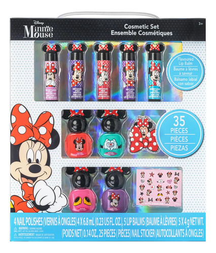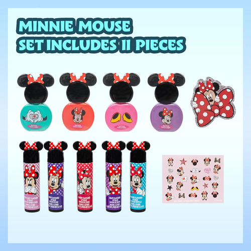 Townley Girl Disney Minnie Mouse Conjunto de Maquillaje cosmético Brillante para niñas con bálsamo Labial Esmalte de uñas Pegatinas perfectas para Fiestas