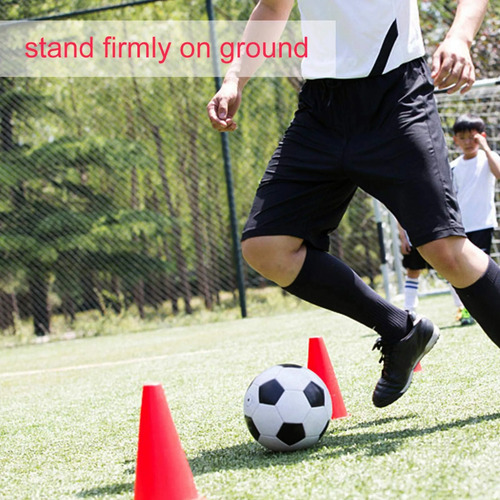 Buena estabilidad el diseño de fondo plano y cuadrado lo hace capaz de permanecer en el suelo de manera estable y no se derriba fácilmente con el viento. Diseño en forma de cono, los conos de entrenamiento de fútbol para patines sobre ruedas se pueden juntar para facilitar su transporte y almacenamiento.