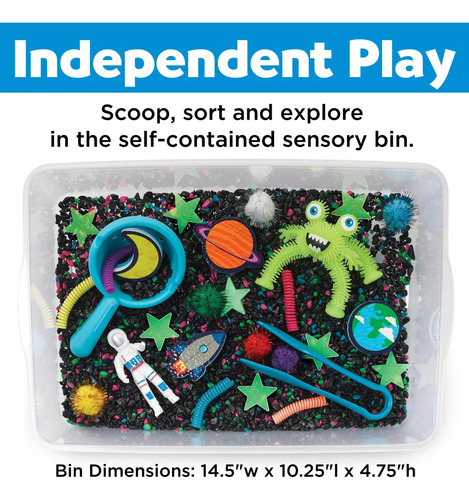 Regalos para niños: el juego completo de actividades incluye 2.5 libras de rocas espaciales, estrellas brillantes, astronautas, alienígenas esponjosas, una variedad de herramientas de habilidades motoras finas y mucho más Todo empaquetado en un contenedor con tapa para un fácil almacenamiento. El contenedor mide aproximadamente 14.5 pulgadas de ancho x 10.25 pulgadas de largo x 4.75 pulgadas de alto