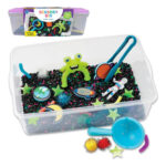 Aventura en el espacio exterior: disfruta de una misión intergaláctica con un contenedor de juego de galaxia lleno de estrellas brillantes, 2.5 libras de rocas espaciales, astronauta, alienígena blando y mucho más Este juguete espacial autónomo es una experiencia sensorial táctil única fuera de este mundo