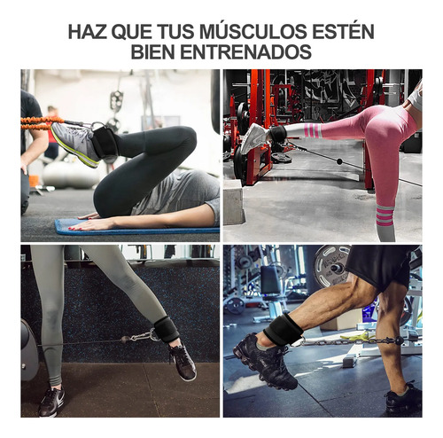 LA MEJOR OPCIÓN PARA INNUMERABLES EJERCICIOS DE FITNESSCompatible con sistemas de cable estándar, entrenadores de resistencia, instructores funcionales y más.Nuestras tobilleras deportivas son accesorios profesionales indispensables para tu entrenamiento de piernas y glúteos en el gym, en casa o mientras viajas y son lo suficientemente pequeñas para llevarlas a cualquier lugar.