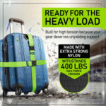 Te gusta empujar tus bolsas al límite Con una tensión de fuerza máxima de más de 400 libras, nuestras correas de equipaje resistentes aseguran que tus cosas permanezcan en tu bolsa, justo donde pertenece
