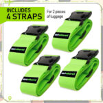 Incluye 4 correas, buenas para hasta 2 piezas de equipaje. Envuelve uno alrededor de la parte superior de tu bolsa. Envuelve uno alrededor del lateral de tu bolsa. Tira de ellos apretados y estás listo