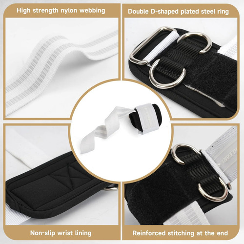 ¿Qué hace que estas correas dobles de anillo en D sean la opción superior Con un resistente diseño de doble anillo en D para una seguridad y versatilidad superiores. Los anillos en D de acero duraderos bloquean de forma segura tus muñecas en su lugar, evitando resbalones durante repeticiones desafiantes y levantamientos pesados, un cambio de juego en comparación con las endebles correas de un solo anillo. Diseñado para soportar los entrenamientos más duros mientras te mantiene estable y seguro.