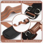 ¿Qué hace que estas correas dobles de anillo en D sean la opción superior Con un resistente diseño de doble anillo en D para una seguridad y versatilidad superiores. Los anillos en D de acero duraderos bloquean de forma segura tus muñecas en su lugar, evitando resbalones durante repeticiones desafiantes y levantamientos pesados, un cambio de juego en comparación con las endebles correas de un solo anillo. Diseñado para soportar los entrenamientos más duros mientras te mantiene estable y seguro.