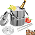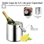 3.2L de Cubeta para Hielo de Doble Pared Hielera, 304 Hielera Acero Inoxidable con tapa, clip, filtro, Hielera de Mesa Adecuado para el hogar, fiesta camping bar restaurante
