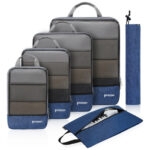 Juego de 6 bolsas impermeables comprimibles, compañeros de viaje de TPU y nailon, organizador de equipaje resistente para el hogar, viajes, camping y gimnasio – Azul marino