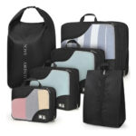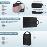 Bien Organizado y CómodoEl juego de 6 organizadores de viaje contiene 4 cubos comprimibles de distintos tamaños, 1 bolsa para zapatos y 1 bolsa para la ropa sucia. Además de ahorrar espacio, los organizadores de equipaje también ayudan a mantener diferentes artículos en cubos separados para evitar que la ropa se desordene cuando se viaja.