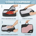 Ahorre Hasta un 60% de EspacioLas cremalleras dobles del cubo de embalaje funcionan perfectamente para comprimir la ropa y ayudar a ahorrar espacio en su equipaje de mano o mochila de viaje. La cremallera doble de alta calidad con cordón extendido garantiza una apertura y cierre rápidos y sencillos de los cubos de embalaje. Asa de cinta para sacar fácilmente los cubos de la maleta o mochila.