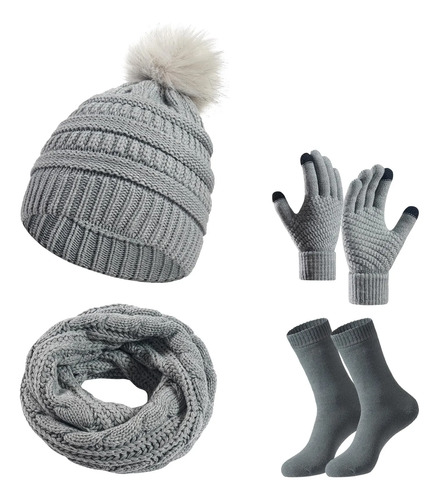 Gorro de Invierno Bufanda y Guantes Táctiles, Calcetines4 en 1 Gorras para Frio, Guantes Termicos, Bufandas, Calcetines Térmicos para Mujer