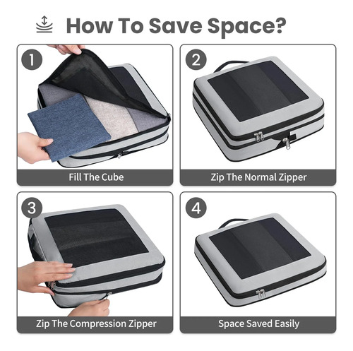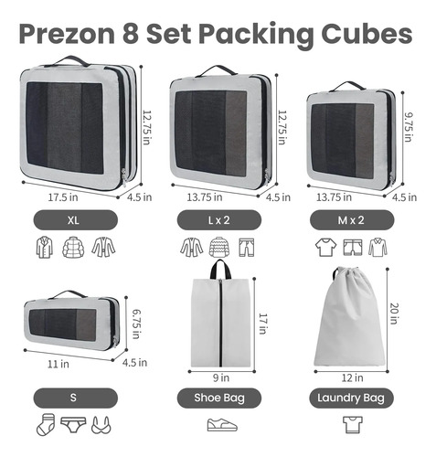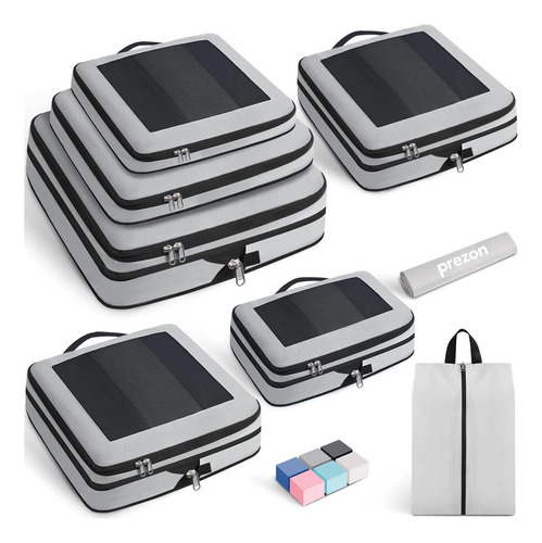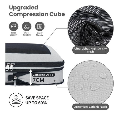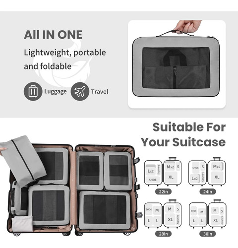 Juego de 8 cubos de compresión para viajes, artículos esenciales de viaje ligeros para día festivo, accesorios de viaje para maletas, organizador de equipaje duradero, 8 peltre, 8 Set, Malla