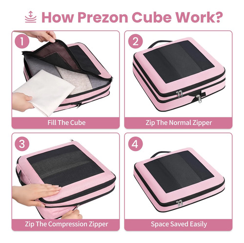 Compresión que ahorra espacio: ¡maximiza el espacio de la maleta Cierre la cremallera exterior fuerte de cobertura completa para lograr una compresión significativa, empacando más en menos espacio. Los cubos de embalaje Prezon son ideales para viajes u almacenamiento organizado.