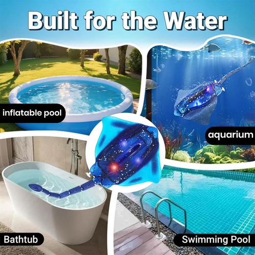 Juguete biónico Manta Ray RCNuestra manta robótica realista cuenta con alas de goma flexibles que imitan el deslizamiento real del océano, con juntas de cola articuladas para movimientos de natación increíblemente fluidos. Mira cómo bucear hasta 2 pies de profundidad y realiza acrobacias subacuáticas, ¡el juguete acuático más realista que hayas visto