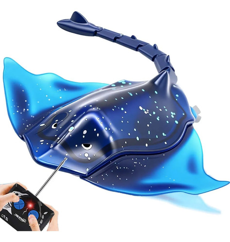QUN XING – Juguete de piscina con control remoto realista para natación, RC y manta raya, batería recargable y luces LED, juguete de agua de verano, regalo para niños de 8 a 12 años, color azul