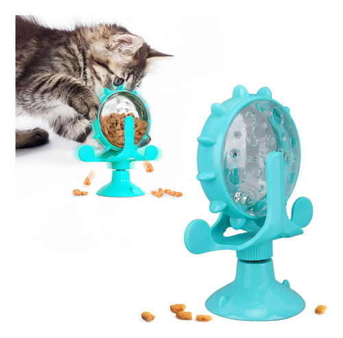 BTIHCEUOT Juguetes Dispensadores de Alimentos, Ventosa Grande, Duradero para Entrenamiento de Gatos (Lago Azul)