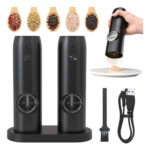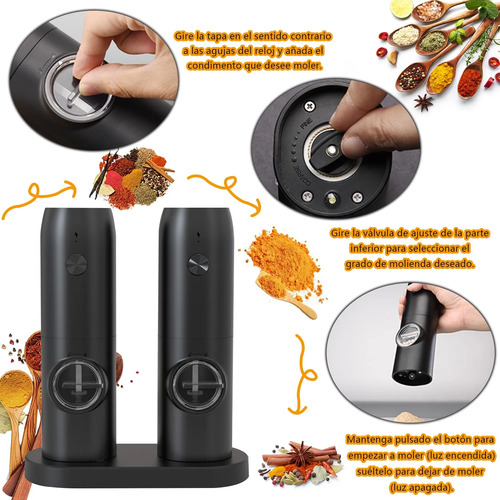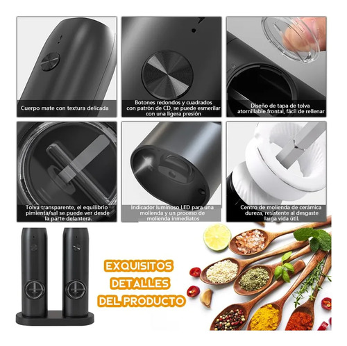 Molinillo eléctrico, molinillo electrico de sal y pimienta 2 piece, Molinillo de Especias luz LED,Ajustable Recargable con Base de Carga de Fácil de Rellenar