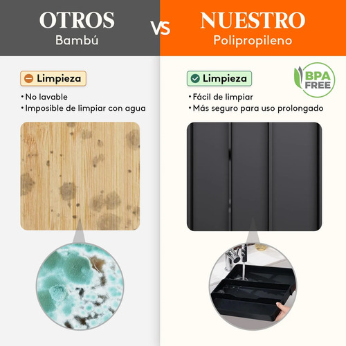 Seguro de usar: Fabricado con material PP libre de BPA, este organizador de utensilios de cocina garantiza la seguridad de todos tus utensilios de cocina, cubiertos y platería. La limpieza es sencilla solo enjuágalo con agua para eliminar cualquier mancha.