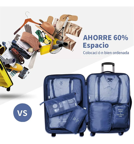 8 piezas Organizadores de Viaje para Maletas,Impermeable Bolsas de Equipaje Cubos Embalaje de Viaje Bolsas de Almacenamiento para Ropa Zapatos, Cosméticos Accesorios,Organizadores de Viajes,Organizador de Maleta Bolsa(Azul marino)