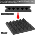 Nivel NRC alto de alta calidadCoeficiente general de reducción de ruido (NRC): 0.55.2 pulgadas La espuma acústica de cuña puede proporcionar una poderosa función de reducción de ruido, ayudar a minimizar la interferencia, aumentar el sonido y el sonido en la habitación o el espacio. ¡Se puede utilizar para tratamiento acústico profesional, atenuación del sonido, ruido y absorción