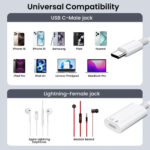 Rendimiento de audio de alta fidelidad: este adaptador de audio Lightning hembra a USB C macho cuenta con un chip de audio de alto rendimiento que garantiza una transmisión de audio estable, lo que te ofrece una experiencia de escucha de audio última intervensión de distorsión de 24 bits/96 khz. Ideal para escuchar música/jugar juegos/hacer video chat en línea con otros