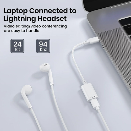 Adaptador de auriculares Lightning: el adaptador de audio USB-C a Lightning de Vcddom te permite usar tus auriculares Lightning conectados a tus dispositivos USB-C como iPad Pro, MacBook, iPhone 16. No hay necesidad de preparar otro auricular USB C como resultado de desperdicios. Además, este adaptador de audio también admite la función de control de cables como subir/bajar volumen, reproducción y pausa. Nota: solo para audio, no para carga y datos