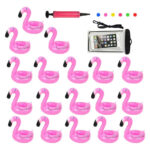 Juego completo para fiesta en la playael juego de portavasos inflables incluye 18 portavasos inflables Flamingo y 1 funda impermeable para teléfono móvil.Además, viene con una pequeña bomba de aire para que sea más fácil inflar completamente los portavasos Flamingo.