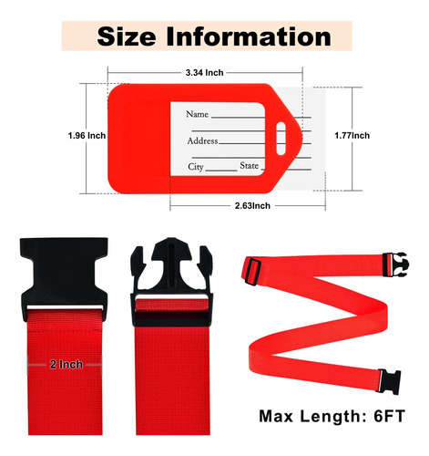 Longitud ajustable: los cinturones de equipaje de 6 pies de largo, 2 pulgadas de ancho cuentan con un diseño ajustable para adaptarse a una variedad de tamaños de veliz y bolsa personaliza la longitud para garantizar un ajuste seguro y cómodo que evita que se deslice o afloje tu equipaje