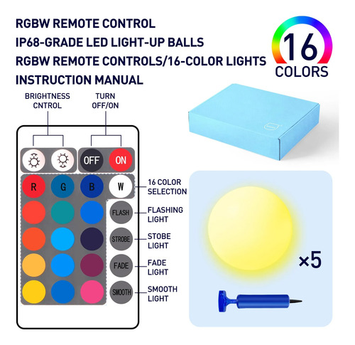 MIAOKE Juguetes De Piscina De 16 Pulgadas (Paquete De 3/5/6/8) – Pelota De Playa Led con Control Remoto, Ideal para Juegos De Piscina, Fiestas Nocturnas De Verano