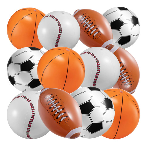 Paquete de pelotas de playa inflables de 12 a 16 pulgadas: marca gran diversión con nuestras pelotas de playa inflables deportivas Cada pedido incluye un total de 12 pelotas inflables de playa con 3 de cada deporte: baloncesto, béisbol, fútbol y fútbol. Estas divertidas y duraderas pelotas con temática deportiva son perfectas para juguetes de piscina, actividades de playa o decoraciones de fiesta.