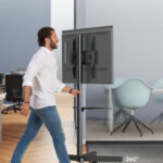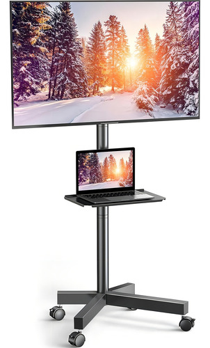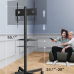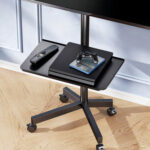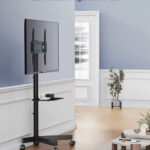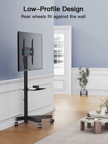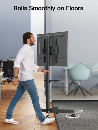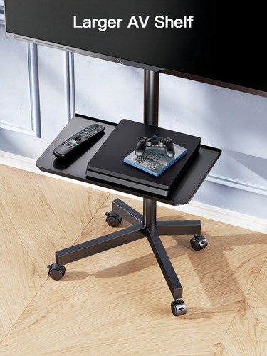 Nuestro soporte de TV rodante cuenta con ruedas giratorias que facilitan el movimiento de una habitación a otra.
