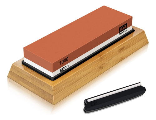 SHAN ZU Piedra de Afilar Cuchillo de Piedra Afiladores Manuales 1000/6000 Grano con Base Antideslizante de Silicona
