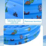 Superficie Inflable Suave Equipada con una alfombra de piso inflable suave y segura, esta piscina redonda es esencial para la diversión de verano en el jardín. ¡Asegúrese de revisar debajo y alrededor de la piscina en busca de objetos afilados o desechos antes de usarla para evitar posibles perforaciones