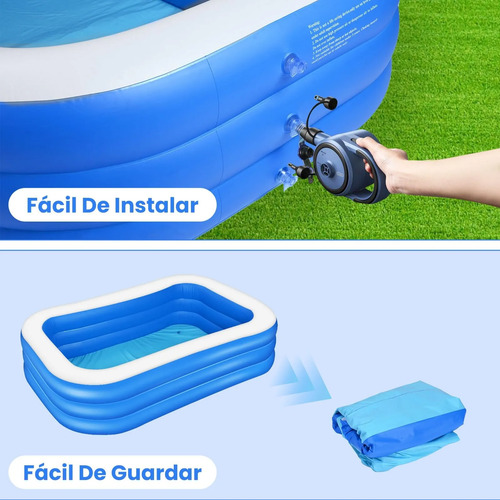 Piscina Inflable Familiar 390x195x60 CM, Alberca Inflable Familiares Triple Grande Rectangular con Bolsa de Almacenamiento, Jardín, Fiesta Acuática de Verano, Piscina Inflable al Aire Libre