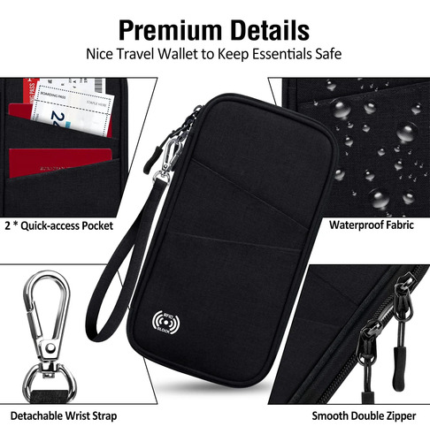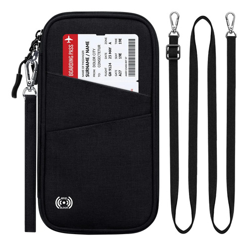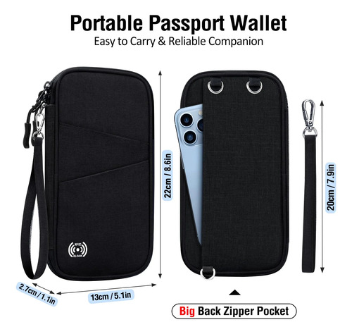 PORTAPARABRISAS DE VIAJE FÁCIL DE LLEVAR: La billetera para pasaporte familiar está diseñada con una correa de muñeca desmontable para mantener sus manos libres al registrarse Esta billetera para pasaporte con tarjeta RFID tiene un diseño compacto y liviano que no aumentará su carga de viaje