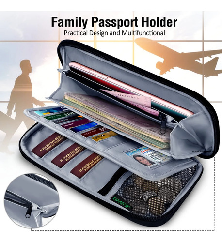 «BKNOOU- Porta Pasaportes Familia Rfid Bloqueo Organizador De Documentos De Viaje, Cartera De Pasaporte De Viaje Impermeable Soporte De Pasaporte Múltiple Para