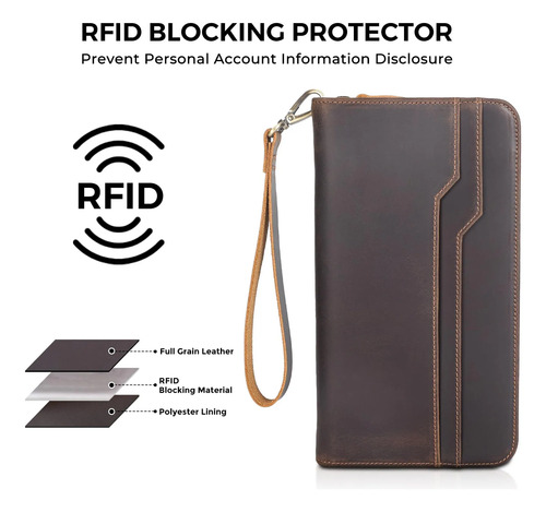 Polare portafolios de piel de grano completo para pasaporte familiar y organizador de documentos, con bloqueo RFID, para 6 pasaportes para hombres y mujeres