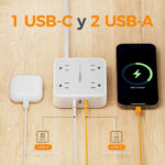 Multicontacto USB C: El extension USB incluye 1 USB C (5V 3A, 15W máx.) y 2 USB A (5V 2.4A, 12W máx. por puerto) Ideal para cargar múltiples dispositivos como teléfonos, tablets, auriculares y más, todo al mismo tiempo