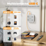 Ahorrar Espacio: Multicontacto USB con espaciado amplio diseño para acomodar 8 conectores grandes al mismo tiempo sin bloquear Hace que el adaptador de salida se pueda utilizar en casa o de viaje, especialmente para cocina, baño, oficina y dorm
