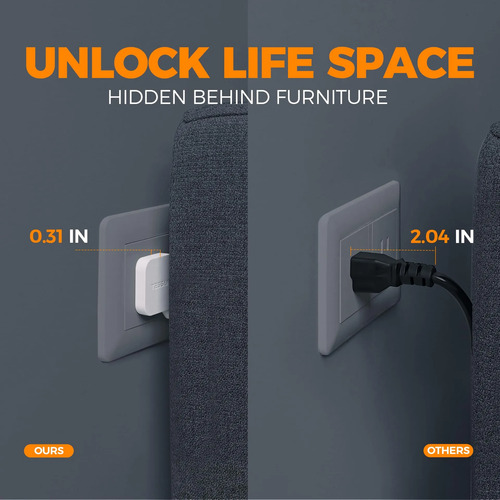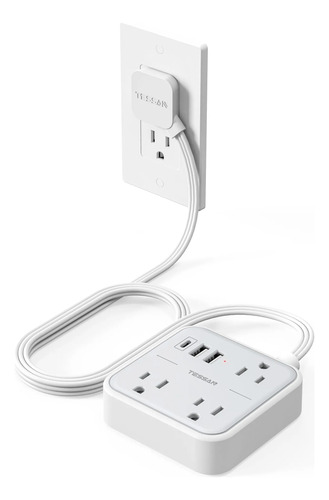 Enchufe Plano de Regleta de Alimentación: DiseƱo delgado de 0.35 pulgadas, el cable de extensión de enchufe plano TESSAN es mucho mĆ”s delgado que la mayorĆa de los enchufes tradicionales, que puede caber fĆ”cilmente en lugares estrechos, como detrĆ”s de muebles, detrĆ”s de la cama, refrigeradores o cualquier lugar que estĆ© cerca de la pared