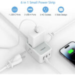 Extension Electrica 6 En 1: Tamaño práctico de 3 lados con 3 tomas múltiples, 2 puertos USB-A y 1 puerto USB-C, hacen que este cable de extensión plano expanda para cargar 6 dispositivos simultáneamente Minimiza el desperdicio de tu computadora de oficina en casa o espacio de bolsa de viaje